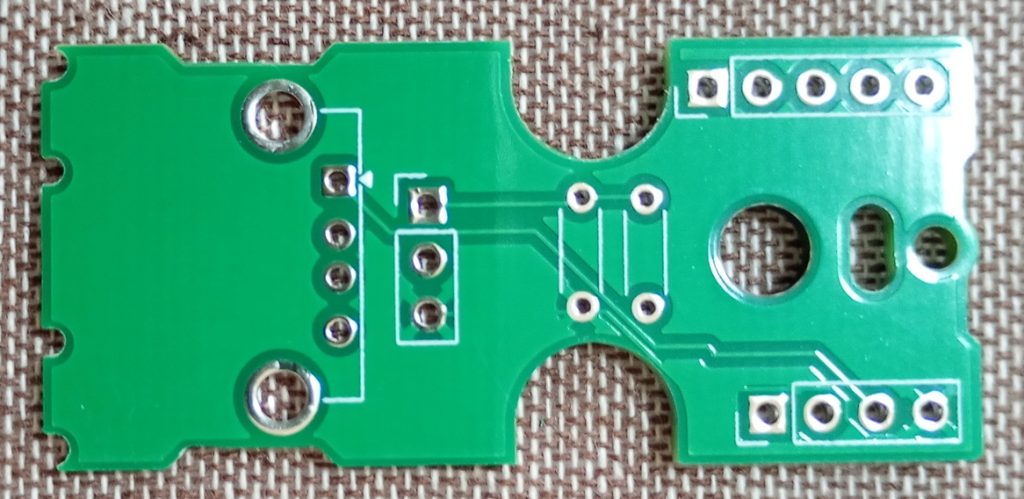 この基板は外形が特殊なため製作できないかと思ったが、綺麗に仕上がっている。プリント基板はめったに作らないのでこの外形を作るのにKICADで1週間はかかった。